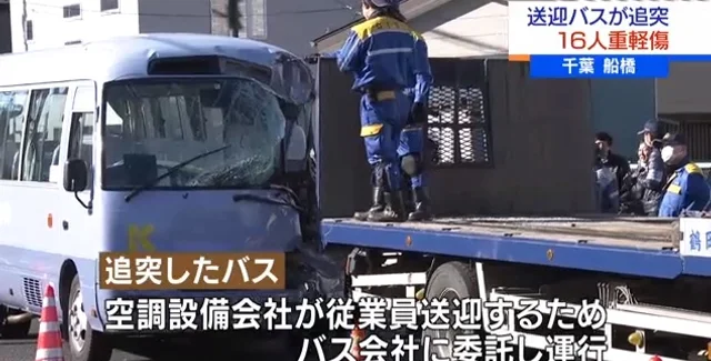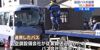 Пассажирский автобус на большой скорости въехал в грузовой автомобиль в городе Фубанаси префектуры Тиба.