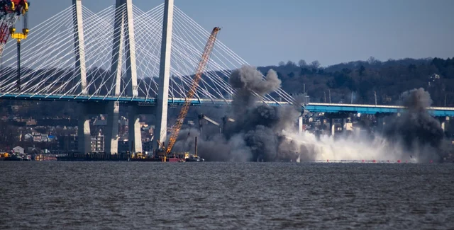 Строители с помощью динамита демонтировали старый мост Tappan Zee через реку Гудзон, который построили в Нью-Йорке 64 года назад. Полюбоваться на взрыв собрались сотни людей, об этом пишет ABC News