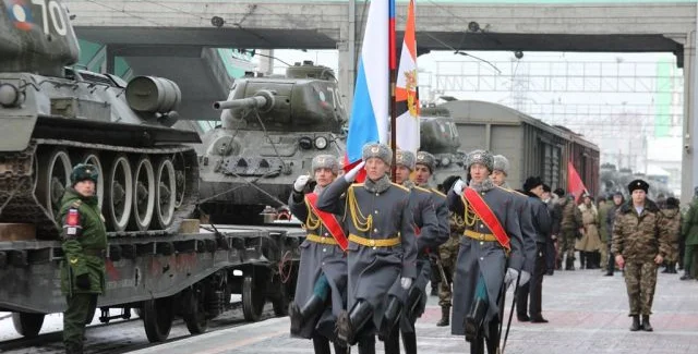 На железнодорожной станции Новосибирск-Главный торжественно встретили 30 танков Т-34, переданных России Лаосом.