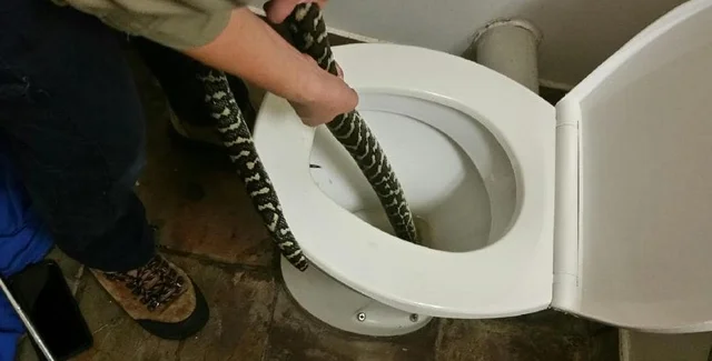 Ловец Жасмин Зелени рассказала, что змеи часто прячутся в туалетах, когда ищут для себя воду в жаркую погоду.