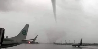 Смерч разметал автобусы, самолеты и бортовые трапы в международном аэропорту города. В результате инцидента, получили разного рода травмы 12 человек.