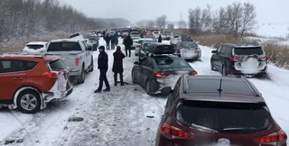 Причиной масштабной аварии стала плохая погода: метель и гололедица.
