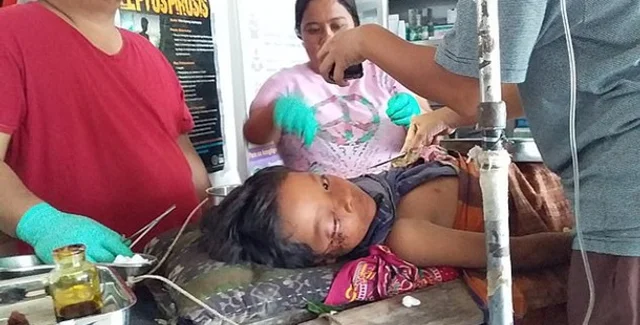Отец услышал крики сына и нырнул за рептилией, прихватив с собой палку. Мужчина несколько раз ударил крокодила доской, но тот не реагировал. Тогда Абулхасан поймал хищника за лапу и покусал его.