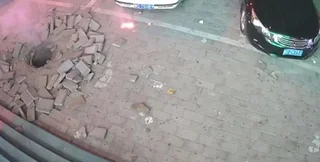 В городском округе Чифэн ребенок поджег фейерверк и бросил его на тротуар, где как раз был канализационный люк. На кадрах видно, как происходит мощный взрыв.