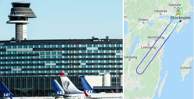 Самолет, на борту которого находятся 169 человек, срочно вернулся в аэропорт Арланда в Стокгольме после поступления информации о возможном наличии бомбы на борту.
