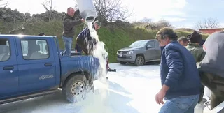 В Сардиния местные аграрии вылили на дорогу тысячи тонн овечьего молока.