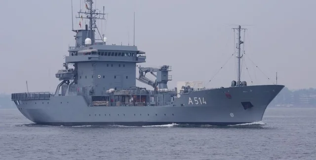 По его словам, в пролив Босфор около 07:45 курсом на Стамбул вошел флагман Постоянной противоминной группы НАТО №2 Standing NATO Mine Countermeasures Group Two (SNMCMG2). Это немецкий корабль комплексного снабжения FGS Werra (А 514) типа "Эльба".