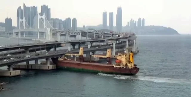 Российский грузовой корабль Seagrand врезался в мост в южнокорейском порту Пусан.