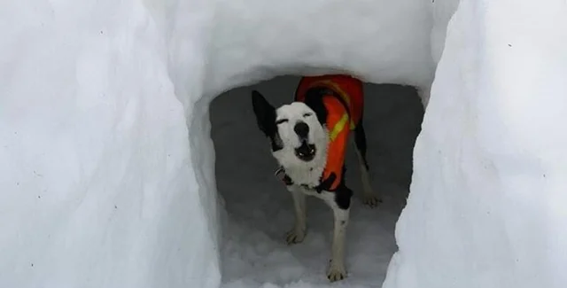 Mountain Rescue Search Dogs England, Британская ассоциация по подготовке собак-спасателей представила видео тренировки спасательной операции, засыпанных снегом людей собаками.
