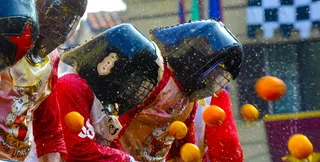 В итальянском городке Ивреа ежегодно проходят уличные битвы апельсинами