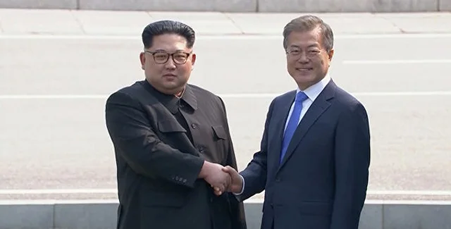 - 27 апреля 2018 года лидеры КНДР и Южной Кореи Ким Чен Ын и Мун Чжэ Ин встретились на демаркационной линии между двумя странами в пункте переговоров Пханмунджом. Во время исторической встречи политики поприветствовали друг друга и пожали руки.