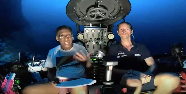 Президент Сейшел Дэнни Фор произнес речь о защите океанов, находясь в подводном аппарате на глубине больше 120 метров.