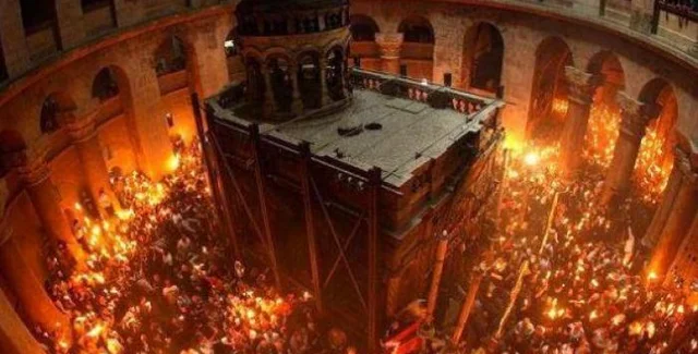 После схождения огня Феофил III передал святыню верующим, которые зажгли от нее связки из 33 свечей – по возрасту Христа.