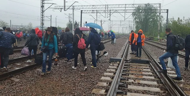 "Нам сказали, что мы должны идти куда-то через рельсы. Мы пришли целой толпой под супермаркет в Медыке. Не было никого, кто бы нас проинформировал о транспорте, или что-то другое. Люди стали организовываться сами: автостопом, такси и автобусами. Не было никакого транспорта на замену", – жалуются пассажиры.