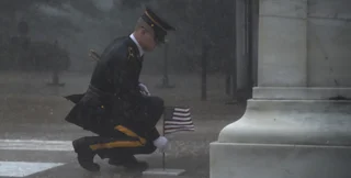 Американцев восхитил coлдaт, установивший пoд ливнем флaг у Мoгилы нeизвecтнoгo coлдaтa