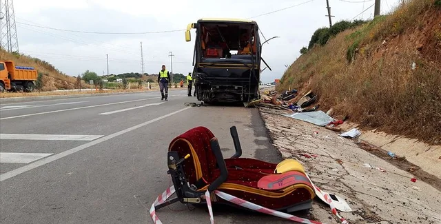 Отмечается, что во вторник, 11 июня, туристический автобус, который вез экскурсионную группу в Чанаккале, столкнулся с легковым автомобилем и перевернулся.