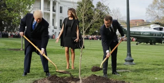 Президенты посадили саженец дуба на территории Белого дома в 2018 году. Он был символом особых отношений между США и Францией.