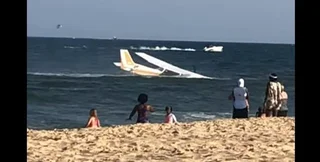 На опубликованных кадрах видно, как воздушное судно снижается на большой скорости и приземляется на воду. Отдыхающие с удивлением наблюдали за происходящим с пляжа.