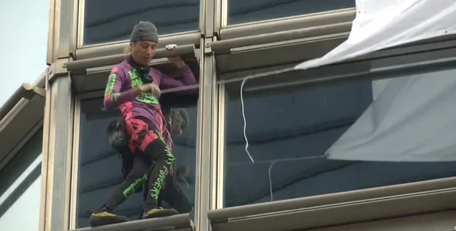 Как и ранее, для восхождения на небоскреб Робер не использовал страховку и другое альпинистское снаряжение.