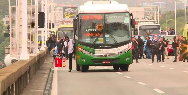 Нападение на автобус произошло рано утром на мосту Рио-Нитерой протяженностью 13 км. Злоумышленник угрожает "залить автобус бензином".