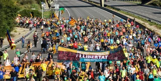 - В знак протеста против осуждения лидеров сепаратистского движения Каталонии тысячи людей направились маршами с разных городов региона в Барселону.