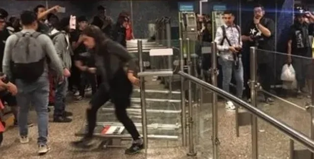 В ночь на субботу демонстранты бросали "коктейли Молотова" на станциях метро. По данным метрополитена, в общем повреждены почти все 164 станции, были уничтожены турникеты и ворота.