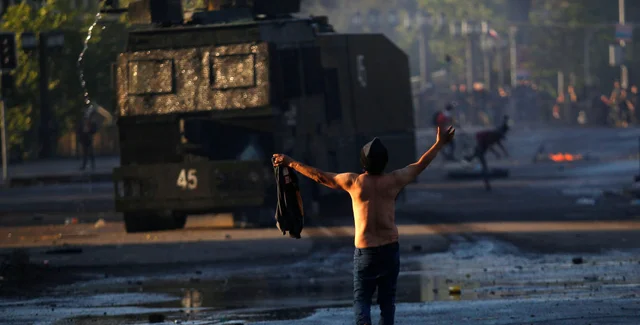 Наиболее масштабные беспорядки пришлись на минувшие выходные. В Сантьяго и других чилийских городах протестующие поджигали автобусы, громили станции метро и противостояли спецподразделениям полиции.