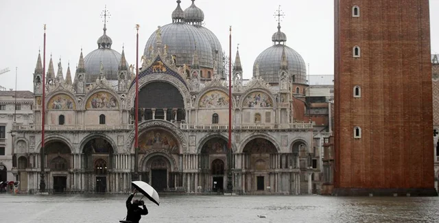 Особенно сильно затопило Венецию в районе площади Святого Марка, поскольку она расположена в одной из самых низких частей города.