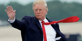 Трамп с куском белой бумаги, прилипшей к ноге, прошел до самолета. Бумага отлипла от него лишь, когда он начал подниматься на борт.