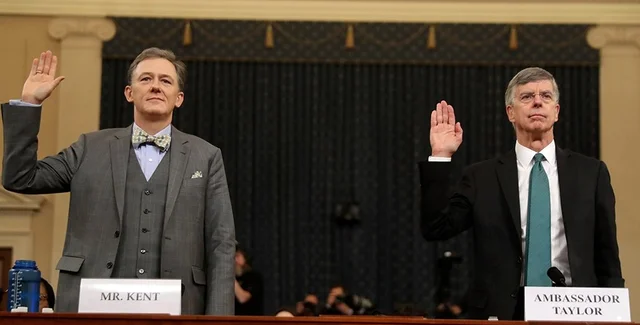 - За это время, перед тремя комитетами Палаты давали показания, такие ключевые дипломаты, как Курт Волкер, Мари Йованович, Гордон Сондленд, Джордж Кент и другие. Поворотными показаниями в деле об импичменте можно назвать свидетельства временного поверенного США в Украине Уильяма Тейлора и чиновника из Совета нацбезопасности Белого дома Александра Виндмана, который присутствовал при разговоре двух президентов.