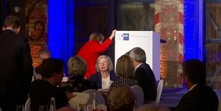 Меркель упала на оба колена, но уже через секунду встала, поправила юбку и отшутилась, что не увидела лестницы.