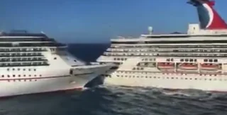 Корабль Carnival Legend подплывает к судну Carnival Glory, а затем врезается в него