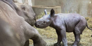 Самка носорога по имени Доппси справилась с родами без посторонней помощи, но за родами наблюдала целая команда специалистов по камерам видеонаблюдения.