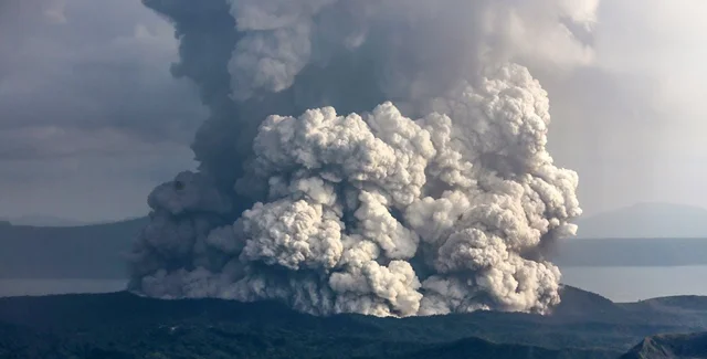 В Филиппинах вулкан Тааль начал выпускать гигантские столбы пепла. Власти начали эвакуацию около 8 тысяч людей, живущих поблизости.