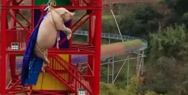 Китайцы перед забоем "прокатили" свинью на банджи-джампинге. В соцсетях – буря негодования