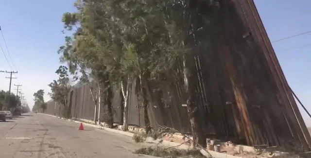 Стальные панели высотой более 9 метров начали наклоняться под опасным углом в результате сильного ветра. Инцидент произошел на границе между калифорнийским городом Калексико и мексиканским Мехикали.