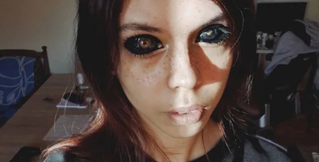 Польская модель Александра Садовска окрасила белки своих глаз в черный цвет и полностью ослепла на один глаз.
