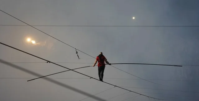 Экстремал назвал этот трюк самым сложным в своей карьере, полукилометровый переход занял у него 31 минуту.