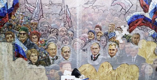 В РПЦ объяснили появление на стенах строящегося главного храма Вооруженных сил РФ мозаичных изображений Владимира Путина, Сергея Шойгу и Иосифа Сталина.