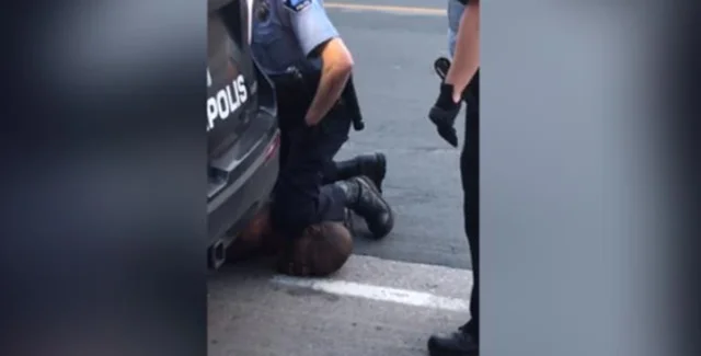 Камеры наблюдения зафиксировали лежащего на земле около полицейской машины темнокожего мужчину, который умолял о пощаде, в то время, как один из полицейских придавливал его шею коленом к асфальту.