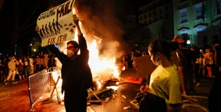 - В связи с происшествием в городе вспыхнули протесты. Протестующие даже сожгли полицейский участок, сотрудников эвакуировали с крыши на вертолете.