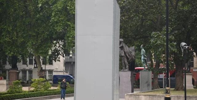Представитель мэра Лондона сказал, что памятник Черчиллю на Парламентской площади был временно закрыт для его защиты.