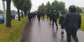 У проходной Минского тракторного завода (МТЗ) ОМОН разгонял собравшихся людей. Среди протестующих были и работники МТЗ.
