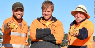 Геологи Брент Шеннон и его зять Итан Уэст нашли самородки за считанные часы поисков с помощью отца Итана Пола Уэста. Мужчины месяцами ждали разрешения, чтобы начать поиск золота в этом районе.