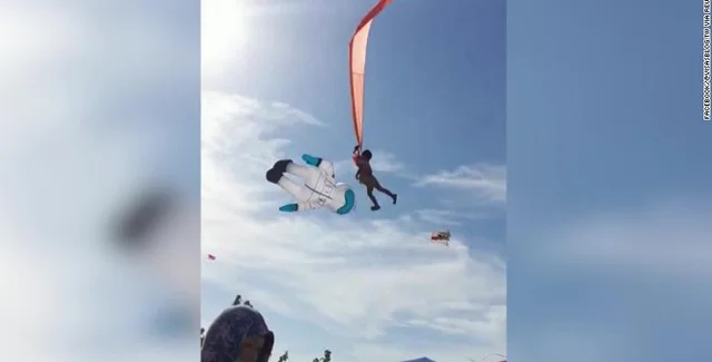 В городе Синьчжу на Тайване, где ежегодно проходит фестиваль воздушных змеев, произошел опасный инцидент. Трехлетняя девочка запуталась в ткани змея, когда подул ветер, и воздушный змей поднялся на высоту более 20 метров, унося за собой ребенка.