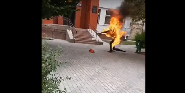 Пока неизвестны точные причины, толкнувшие его на такой поступок, но свидетели утверждают, что мужчина решился на самоподжог в знак протеста против действий силовиков.