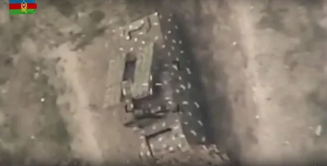 Ранее Минобороны Азербайджана показало кадры, как с помощью дронов-камикадзе поражает технику армян.