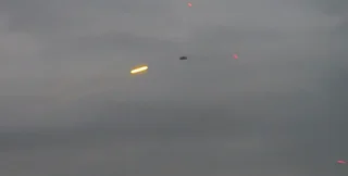 Примерно в то же время на Telegram-канале "Баграмян" опубликовали снятое местными жителями видео воздушного боя в ночном небе над городом Абвоян, менее чем в 15 километрах от Еревана: