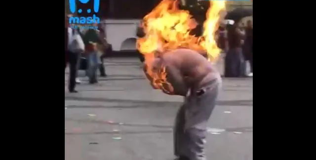 "Мужчина, на груди у которого был плакат, поджег себя. Судя по записям с камер наблюдения, все это время мимо него спокойно шли прохожие, некоторые начали снимать происходящее на телефон", – сообщается под видео в публикации "Базы". Что именно было написано на плакате, не сообщается.