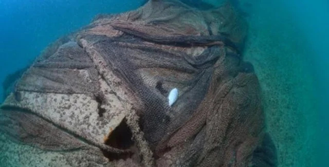 Судно, покрытое илом, песком и водорослями, лежит на глубине 20 метров.